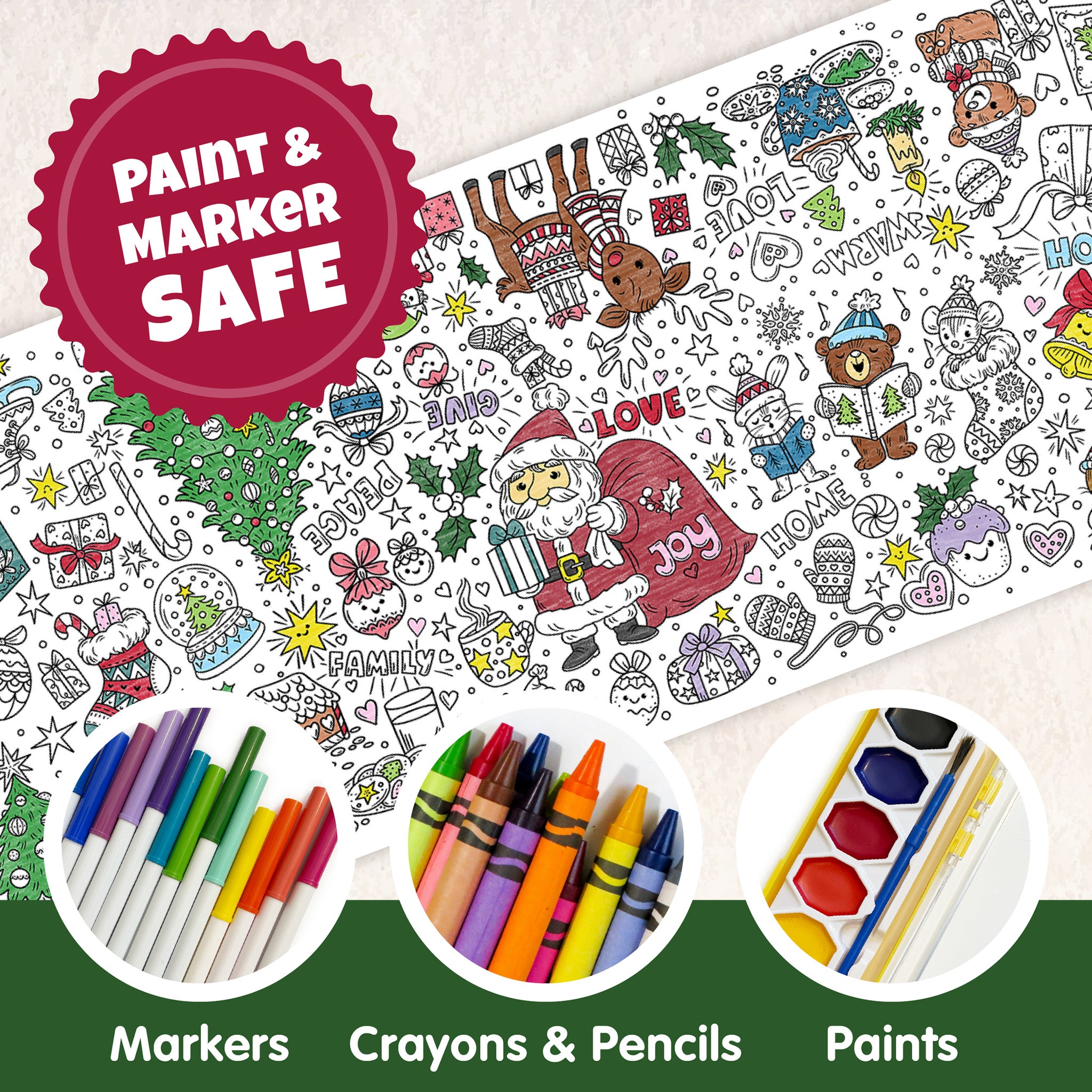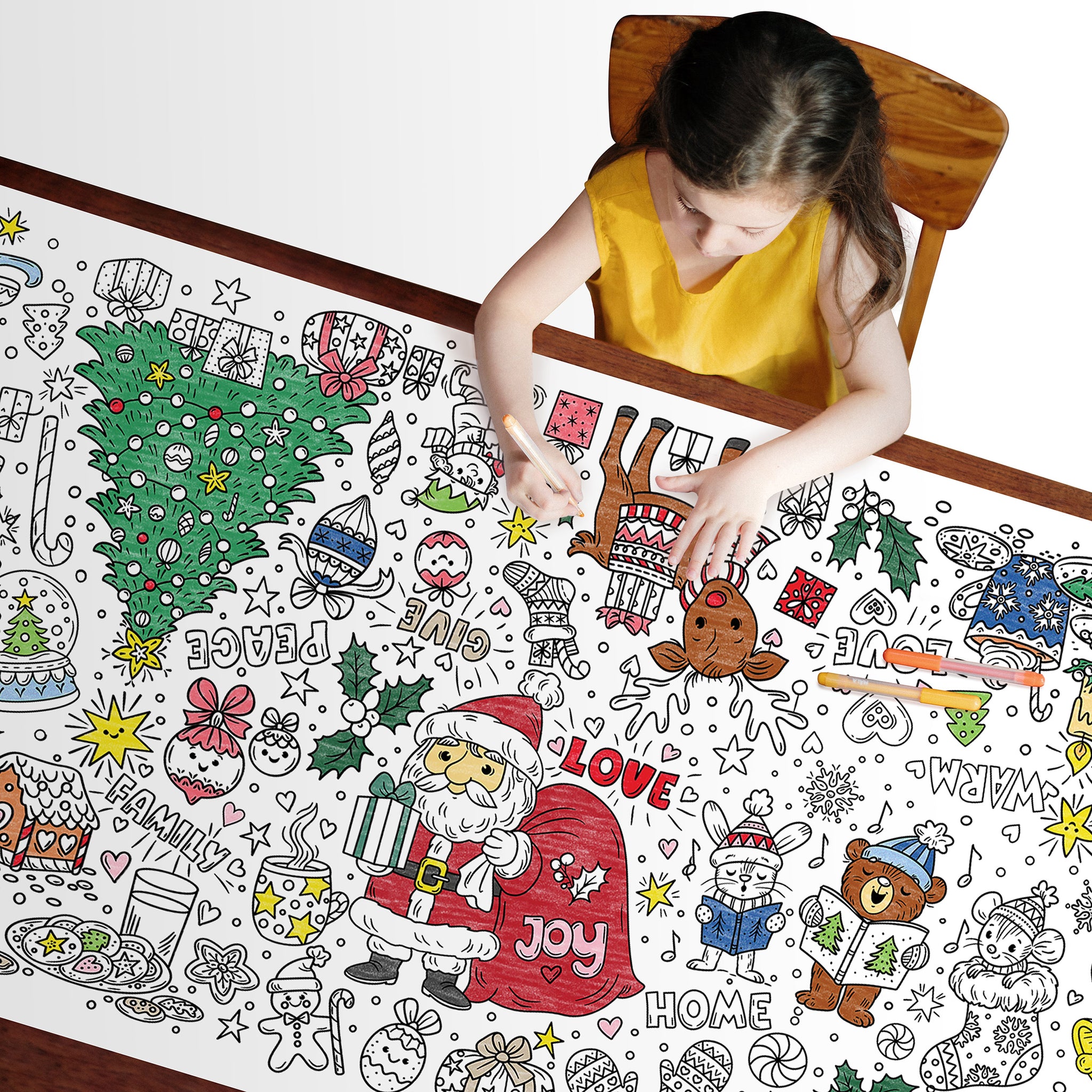 Santa Holiday Christmas Coloring Poster or Table Cover | Perfect for Family Gatherings & School Events | Holiday Party, Winter, Jingle Bells, Fun Design | 30" x 72" inches