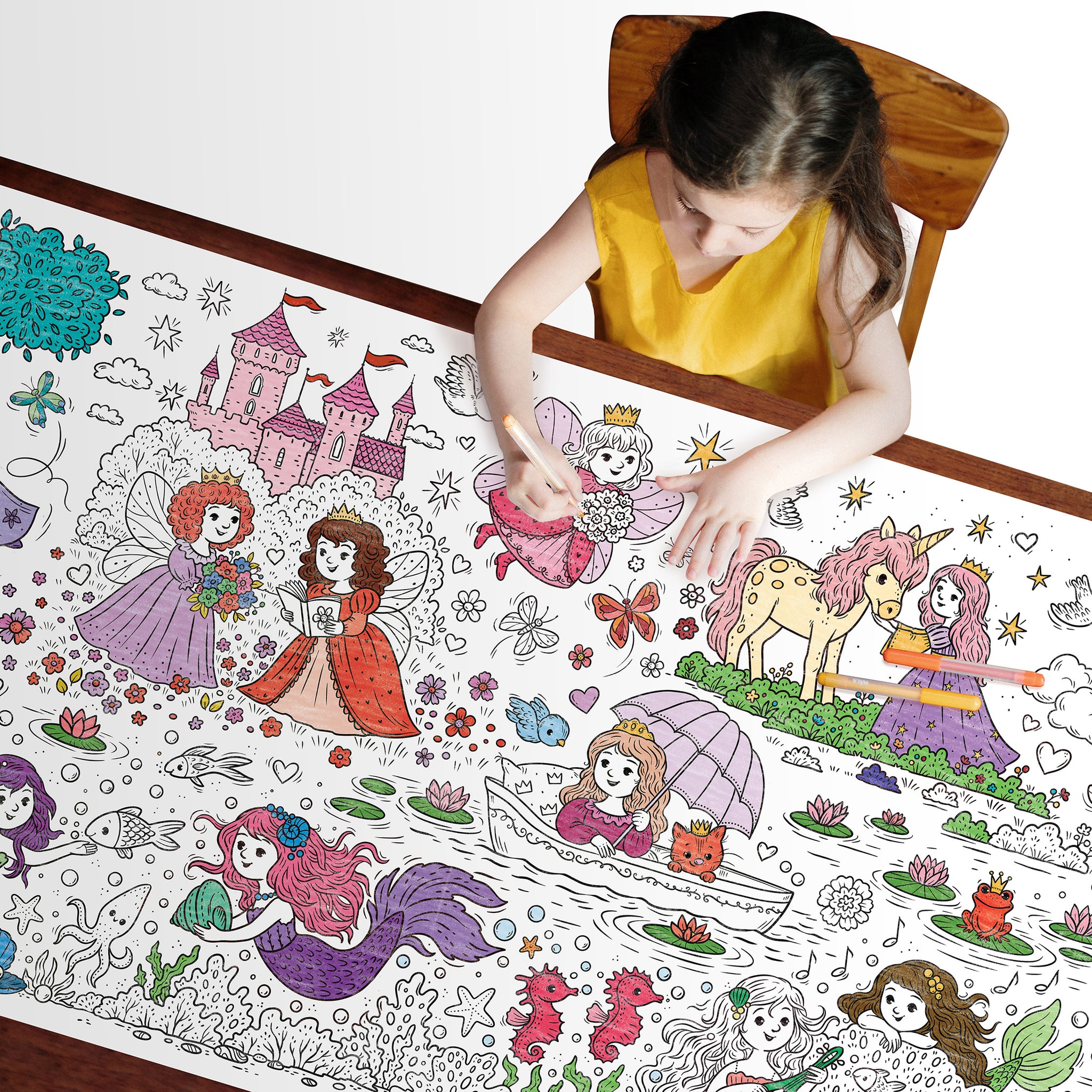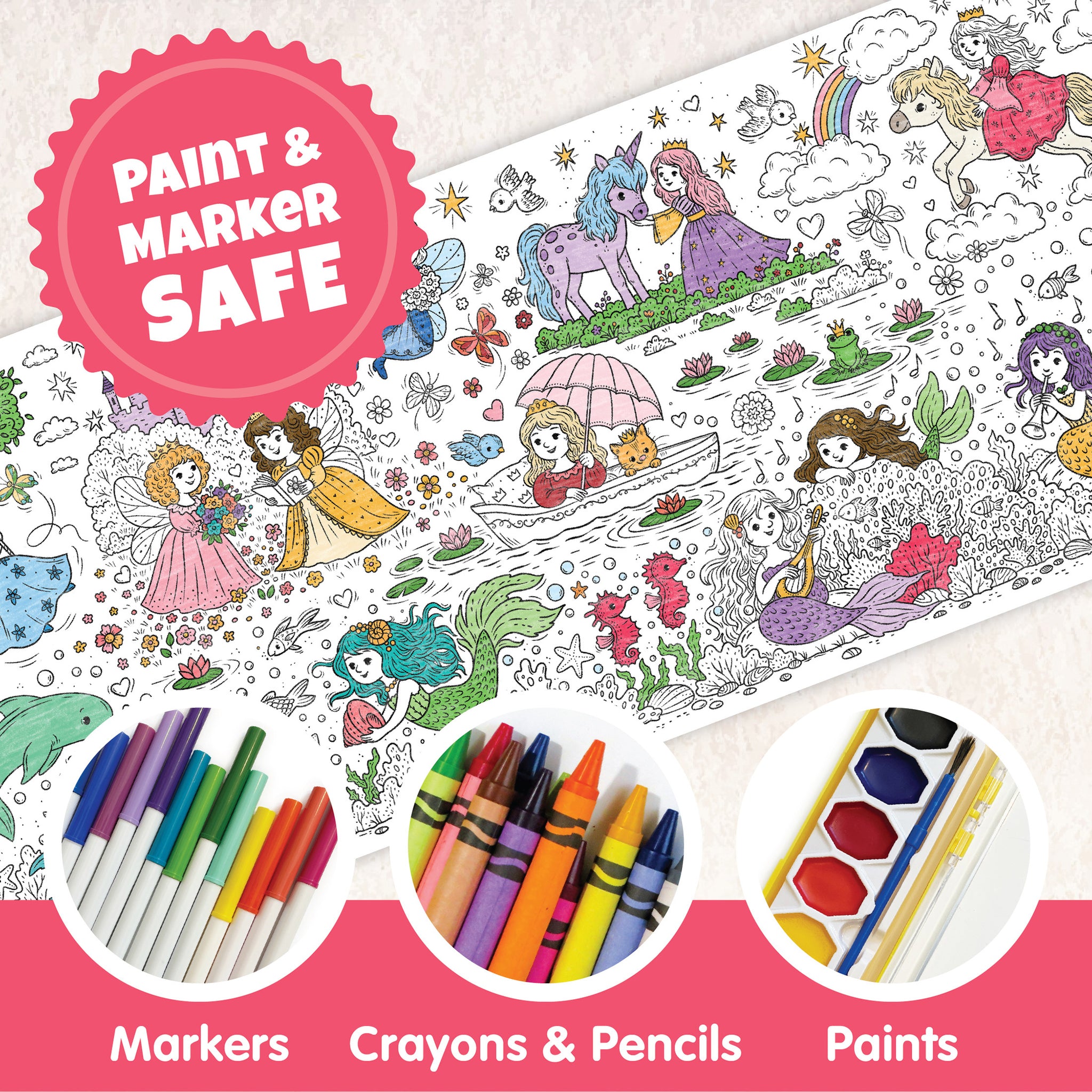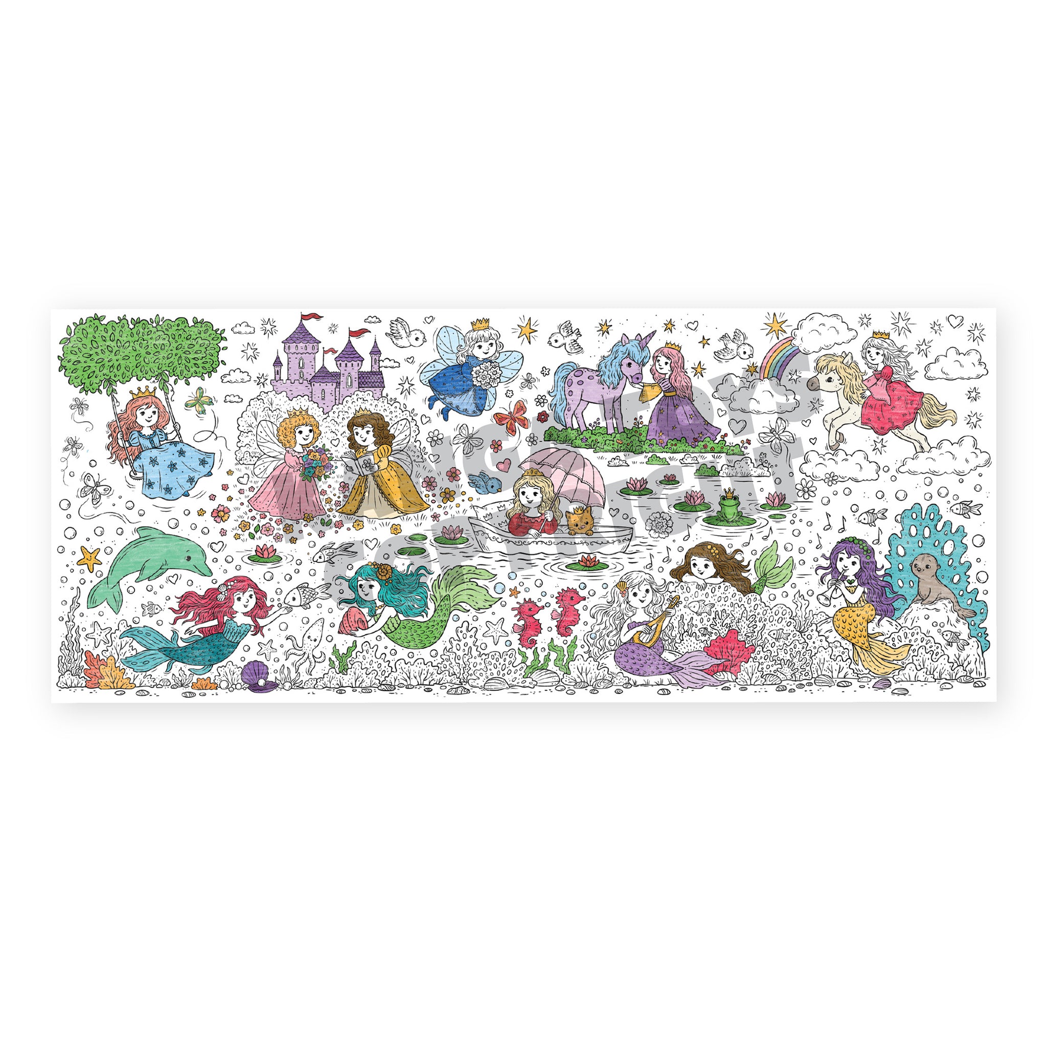 Princess & Mermaid Coloring Poster or Table Cover | Perfect for Family or School Princess Gatherings | Birthday Party, Castles, Unicorns, Mermaids | 30" x 72" inches